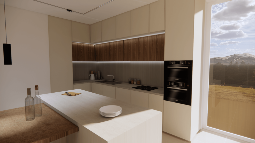 - Agencement sur mesure : Optimisation de l’espace, matériaux nobles (Dekton, pierre, bois), fonctionnalité pensée pour le quotidien